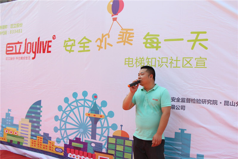 为了更好地普及电梯安全知识,保障每位电梯使用者的乘梯安全,近日巨立股份携手江苏特检院昆山分院,来到了昆山市张浦镇盛巷小区,拉开了2016巨立股份“安全 欢乘 每一天”系列大型公益活动的第一站帷幕。